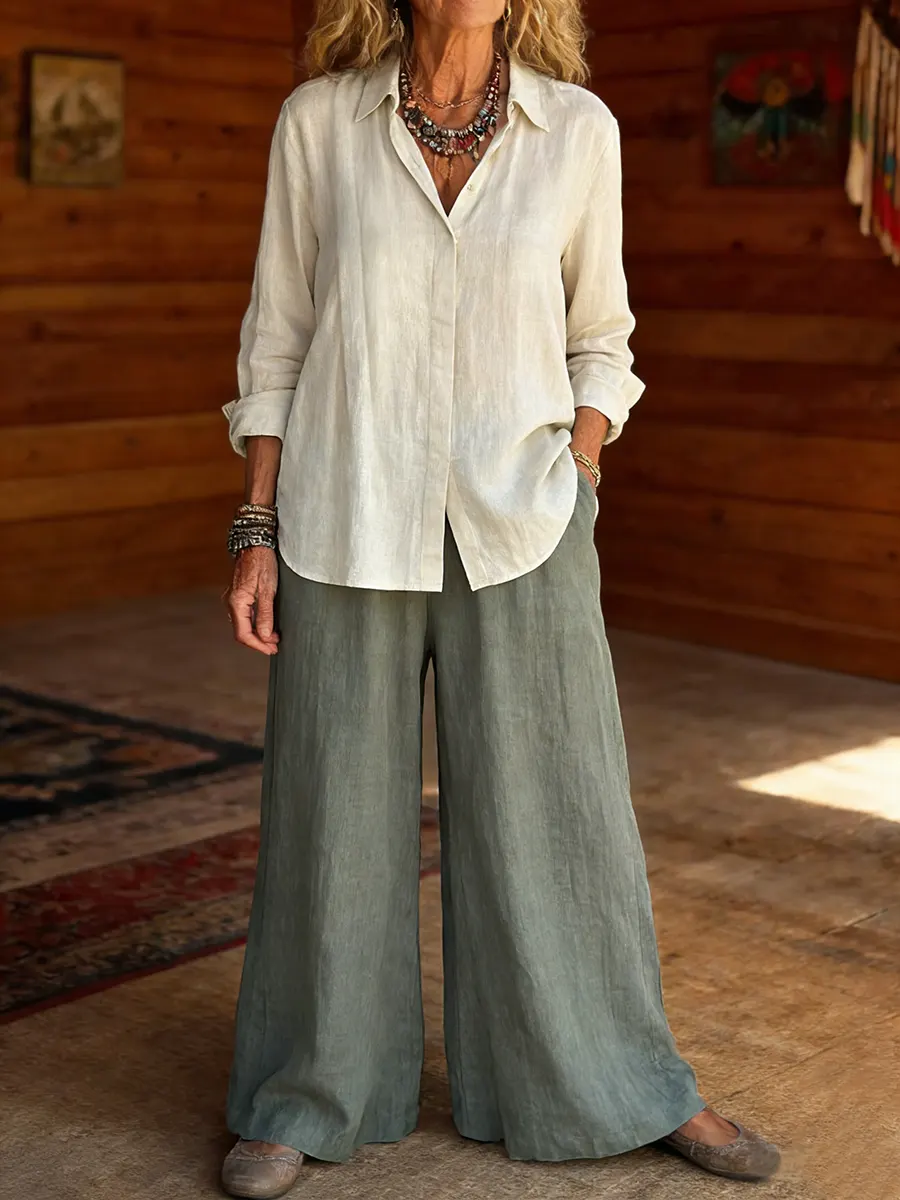 Women's Cotton Long-sleeved Shirt And Trouser Suit